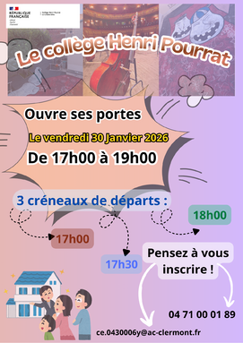 Le collège Henri Pourrat ouvre ses portes le vendredi 30 janvier de 17h à 19h.
