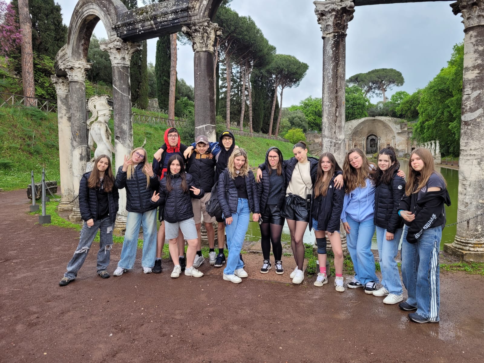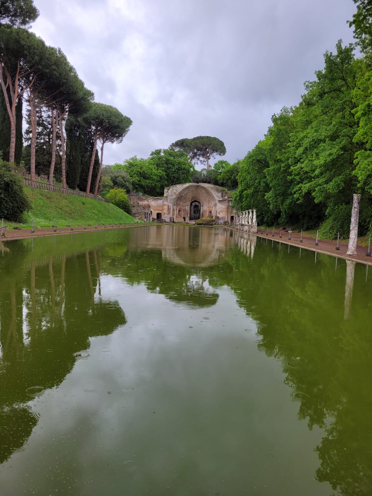 Compte tenu de la météo pluvieuse, nous avons du adapter notre planning… Nous étions plutôt « tranquilles », peu embêtés par la foule ce matin pour visiter la villa d’Hadrien. La cité antique bâtie par l’empereur nous a accueilli à ciel ouvert. Tantôt à l’abri des oliviers ou des vestiges nous avons déambulé dans les 40 hectares visitables. C’était une totale immersion !